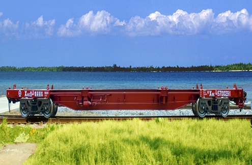 概述:该车是适用在中国标准轨距线路上运行的用于装运集装箱的专用车辆。主要由底架、锁闭装置、转向架、制动装置及车钩缓冲装置等组成。底架为全钢焊接结构,主要材料为耐候钢。采用固定式和翻转式锁头、转K6型转向架、120型控制阀空气制动系统、旋转链式手制动机、17型车钩及MT-2型缓冲器。