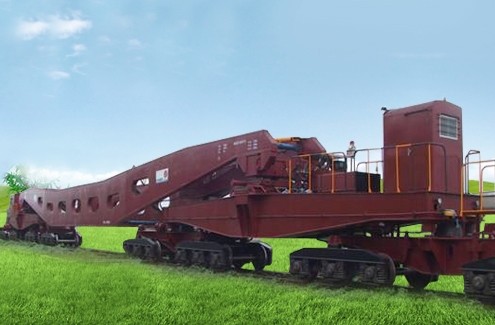 概述:该车是适应在中国准轨铁路运行的用于装运大型变压器等阔大货物的特种车辆。由一组承载框架、两组中底架、两组端部小底架、两组中部小底架、八台3E轴焊接构架式转向架以及旁承、侧移装置、导向装置、液压装置、制动装置、车钩缓冲装置、称重装置、电气装置及操作室等组成。承载框架主要由侧梁、心盘导向梁及连接撑杆组成,心盘导向梁采用空载导向梁和重载导向梁两种结构。重载时,两侧梁与重载心盘导向梁相连,其宽度可通过两侧梁间撑杆进行调节,以适应不同宽度的货物和调整侧梁与货物间的间隙;空车回送时两侧梁与空载心盘导向梁相连,以满足标准轨距机车车辆限界要求。采用3E轴焊接构架式转向架、120型控制阀空气制动系统、NSW型手制动机、17型车钩及MT-2型缓冲器。