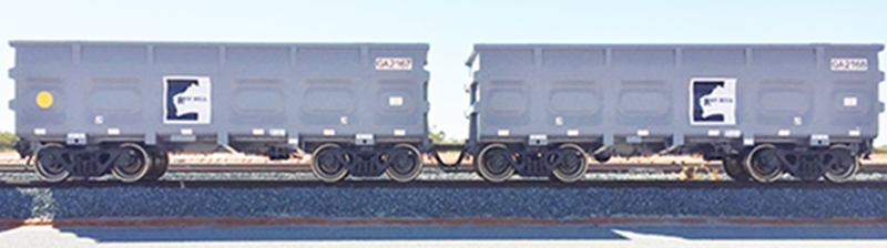 该矿石敞车适应在澳大利亚准轨线路上运行,主要运输矿石。卸货方式为翻车机卸货。车组由两辆矿石敞车通过牵引杆连接,一辆为主车,一辆为辅车。车辆主要由车体、牵引缓冲装置、制动装置、转向架、涂装与标记等组成。