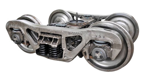 概述:适用于中国铁路轴重27t、商业运营速度100km/h的各型准轨重载货车。结合了摆动式转向架侧架摆动技术和低动力转向架一系轴箱弹性定位技术,轮轨横向、垂向动作用力低,轮轨磨耗小。具有低动力、准径向、无焊接、轻磨耗等特性。主要由摇枕组成、侧架组成、轮对组成、滚动轴承装置、轴箱悬挂装置、中央悬挂及减振装置、转向架制动装置、下摆动装置及弹性旁承等组成。