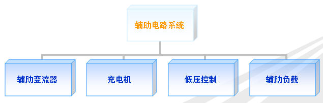 30吨轴重HXD2F型机车辅助系统主要由辅助变流器、辅助滤波器、充电机和辅助负载等构成。辅助系统从牵引变流器的中间直流回路取电,逆变成三相交流电经过辅助变压器和滤波器或通过先斩波再逆变滤波的方式向辅助设备供电。