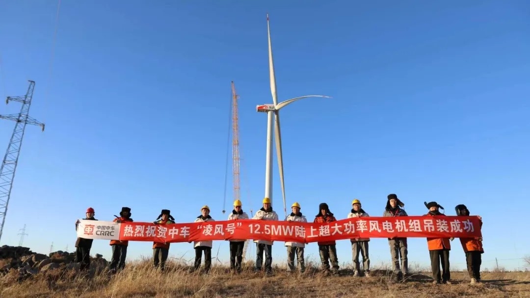 11月21日,超大功率陆上沙戈荒风电机组——中国中车“凌风号”在张北试验机位成功吊装,开启了中国中车沙戈荒风电新征程。