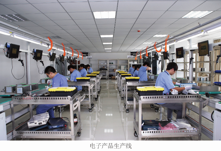 公司配套生产组装测试生产线,各工位配套有显示屏,采用气动传送装置进行工位间的物料传递。同时引进MES制造执行系统,记录生产过程信息、物料防错信息、产品追溯信息和关键生产资源的实时状况,利用工序过程透明化、节点化的方式,促使产品工序能力、工艺水平和质量得到明显提升。不同产品工位资源(作业指导书、工位物料明细)可实现快速切换,降低了操作者劳动强度。