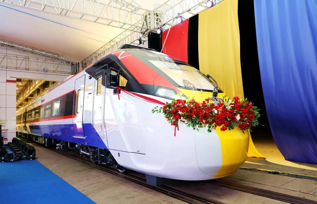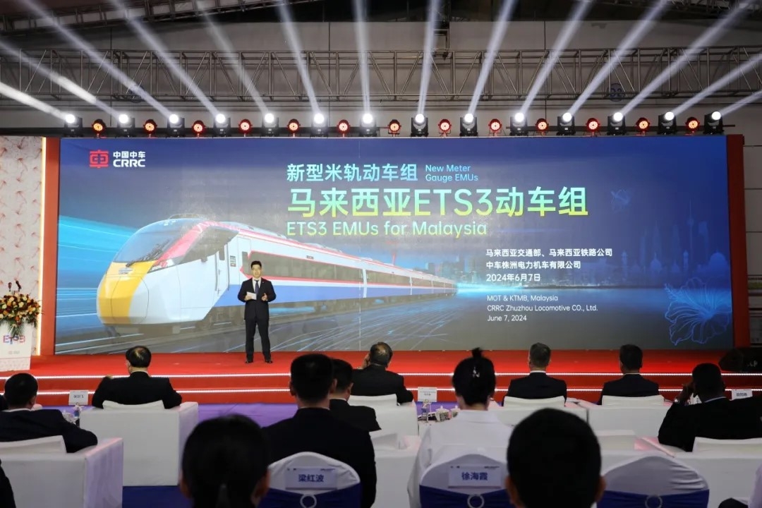The new ETS3 meter-gauge EMU train that CRRC developed for Malaysia today rolled off the production line at CRRC Zhuzhou Locomotive Company Ltd. (CRRC ZELC). It is the third-generation new meter-gauge EMU train independently developed by CRRC for Malaysia following the ETS and ETS2 models. It will be put into operation along the west coastline route of Malaysia with a total length of about 950 kilometers. The ETS3 train will greatly increase the passenger capacity and operational efficiency in the local rail transit network, promoting the modernization of Malaysia’s rail transit.
