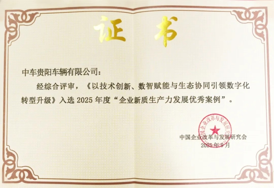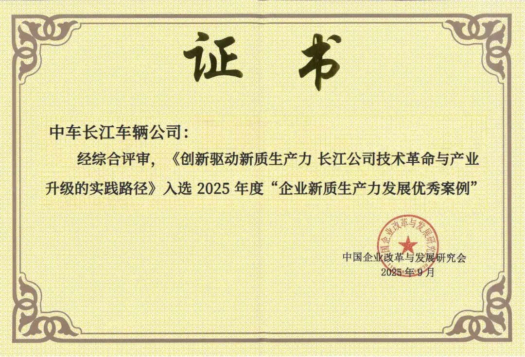 The China Enterprise Reform and Development Society recently announced the results of the 2025 Outstanding Cases of New Productive Forces Development. Four submissions from CRRC Group—by CRRC Changchun Railway Vehicles Co., Ltd., CRRC Times New Materials Technology Co., Ltd., CRRC Yangtze Co., Ltd., and CRRC Guiyang Co., Ltd.—stood out among more than 500 entries and were selected as outstanding cases.