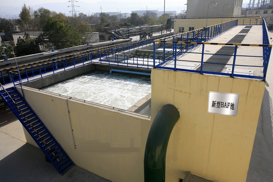 新型BAF设备,专利号:ZL201410161870.7,是为炼油厂污水提标改造而研发的新设备,在传统的BAF基础上进行的工艺创新。采用多级串联滤池的形式,同时实现反硝化,提高了污水处理效率,适应更复杂的水质。其曝气设施安装在池底板下方,并由两套减为一套,这样出现故障可更换,同时解决了偏流、填料层不均等问题;其填料采用新型火山岩填料,具有密度大、孔隙率高等优点,可适应大流量冲洗和加快微生物新老更替的周期。