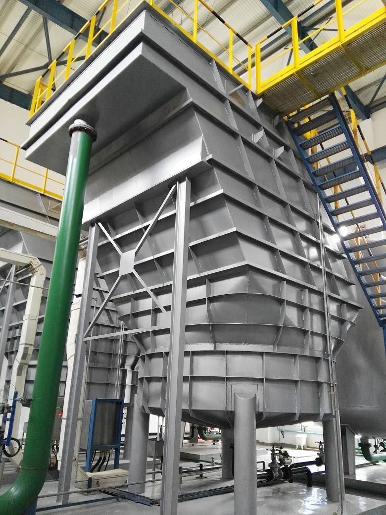 新型高效澄清设备,专利号:ZL201220586777.7该设备是一种技术性能先进的,新型高效的固液分离设备。采用载体絮凝、快速沉淀技术,运行流速高达18m/h,与传统澄清设备比较具有沉降速度快、耐冲击负荷高、污染物去除率高、运行成本低等优点。