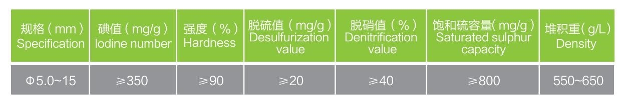 选用优质煤为原料,成品活性炭具有独特的孔隙结构和较高耐磨耐压强度,装在热力发电厂燃煤锅炉和钢铁烧结的烟气脱硫脱硝装置中使用,使尾气达到国家排放标准,同时回收硫酸和硝酸。