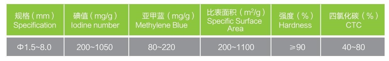 选用优质无烟煤为原料。成品柱状活性炭微、中孔发达、比表面积大、吸附能力强、机械强度高、可再生。广泛应用于有毒气体净化、废气处理、工业和生活用水净化等方面。