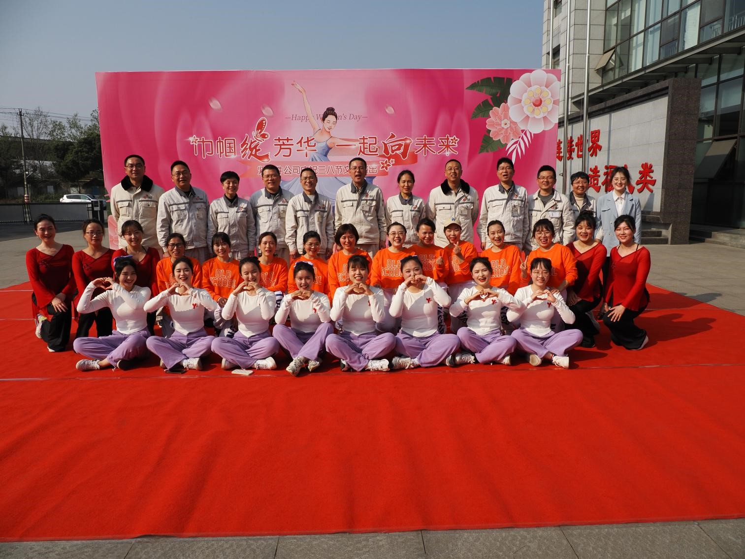 揭牌仪式后,紧固件公司领导班子、中层干部领导、班组长及全体女工分别在紧固件公司小广场主席台就坐欣赏“巾帼绽芳华一起向未来”精彩文艺表演,表演活动由王力主持。
