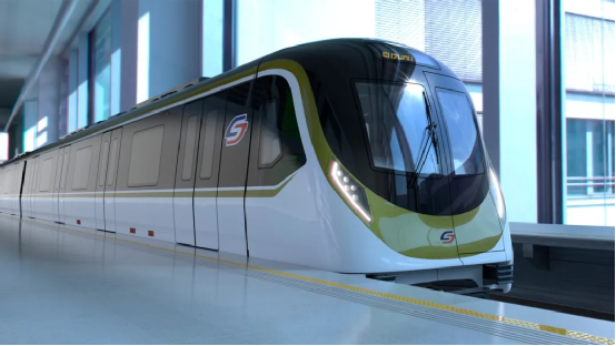 列车采用“橄榄绿”为主色调,车身流线色带恰似水系婉转,彰显着苏州崇文、融和的宏大气度。车头外观设计灵感源于苏州名片“东方之门”,车头造型简约且极具现代感。侧窗设计灵感则源于江南名园沧浪亭“闻妙香室”,网格造型既融入了姑苏古典精巧的历史元素,更体现了苏州厚重的历史感。车灯造型契合了苏州园林四角亭古朴凝炼的独特风格,凸显出城市的底蕴和魅力。