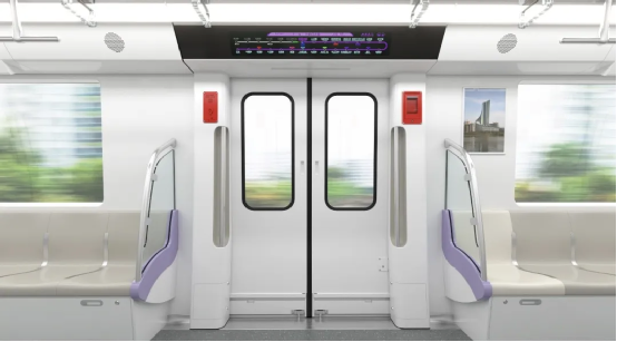 列车采用防寒吸音材料和自主研发转向架,有效降低了噪音和振动,提升了乘客的乘车舒适度。同时还配备了带摄像和噪检功能的乘客紧急报警器、大尺寸液晶动态地图显示屏等先进设施,为乘客提供了更加便捷、直观的乘车体验。同时,车体采用环保材料和环保制冷剂,设置空气监测装置,监测客室内空气的 CO2 浓度、湿度、PM2.5、TVOC含量,为乘客打造了一个洁净、健康的乘车环境。