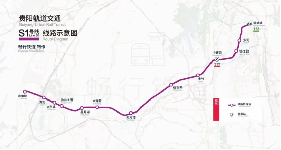 贵阳轨道交通S1线起点为贵安新区皂角坝站,终点为南明区望城坡站,经过贵安新区、花溪区(含经开区)、南明区3个行政区域。线路全长30.32公里,其中地下线22.64公里,高架及地面线7.68公里。