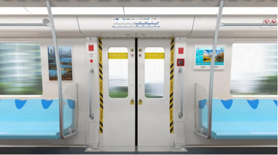 在保证安全和舒适性的前提下,列车通过采用轻量化车体系统、轻量化转向架、轻量化车下设备等措施实现列车的轻量化,整体降低车辆能耗。采用变频热泵空调和自动调节LED照明,不设置制动电阻,列车电制动过程中产生的能量由地面再生制动能量利用装置进行吸收和再利用,进一步降低车辆能耗。车体采用了本体型防火涂料,内外饰采用环保水性漆,空调采用环保制冷剂,带给乘客环保洁净的乘车环境。