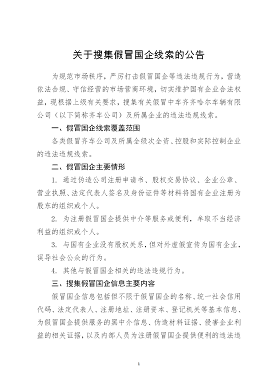 关于搜集假冒国企线索的公告