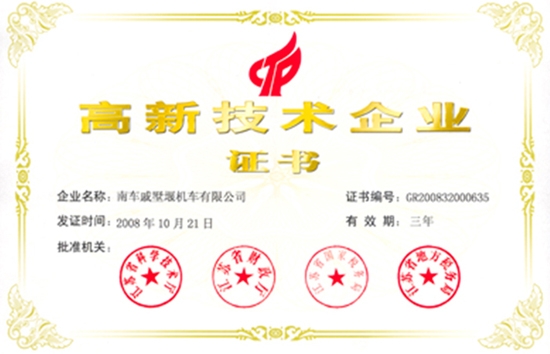 高新技术企业证书