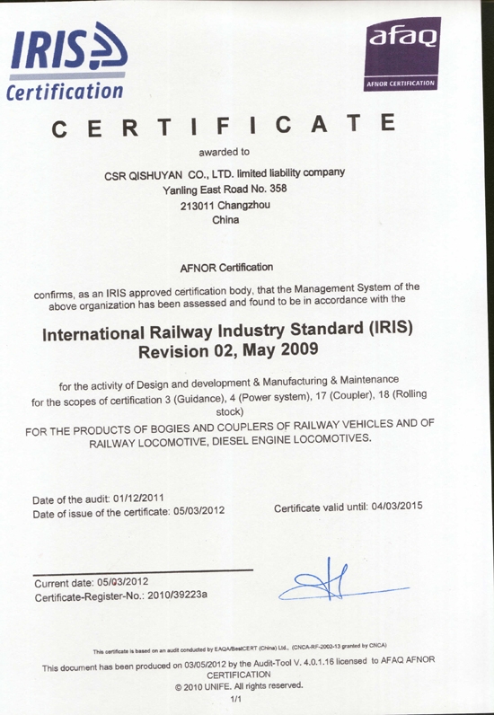IRIS管理体系认证证书