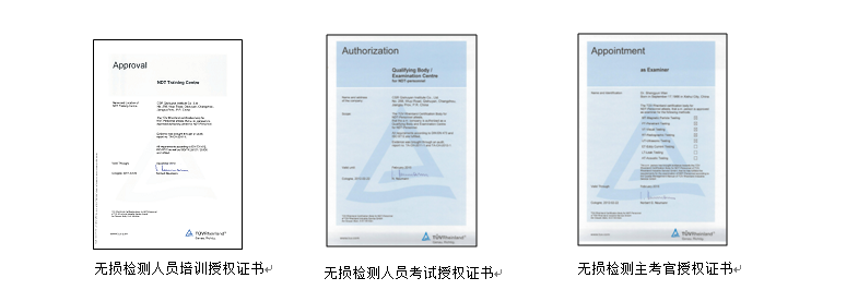 培训中心目前拥有持TÜV授权EN473/ISO9712五种无损检测(超声(UT)、射线(RT)、磁粉(MT)、渗透(PT)、目视(VT))考试主考官1名,五种无损检测授权培训师10名;国际焊工考试主考官2名,并拥有国际焊接工程师、国际焊接技师、国际焊接技士、国际焊接检验师组成的近20名焊接培训师队伍。