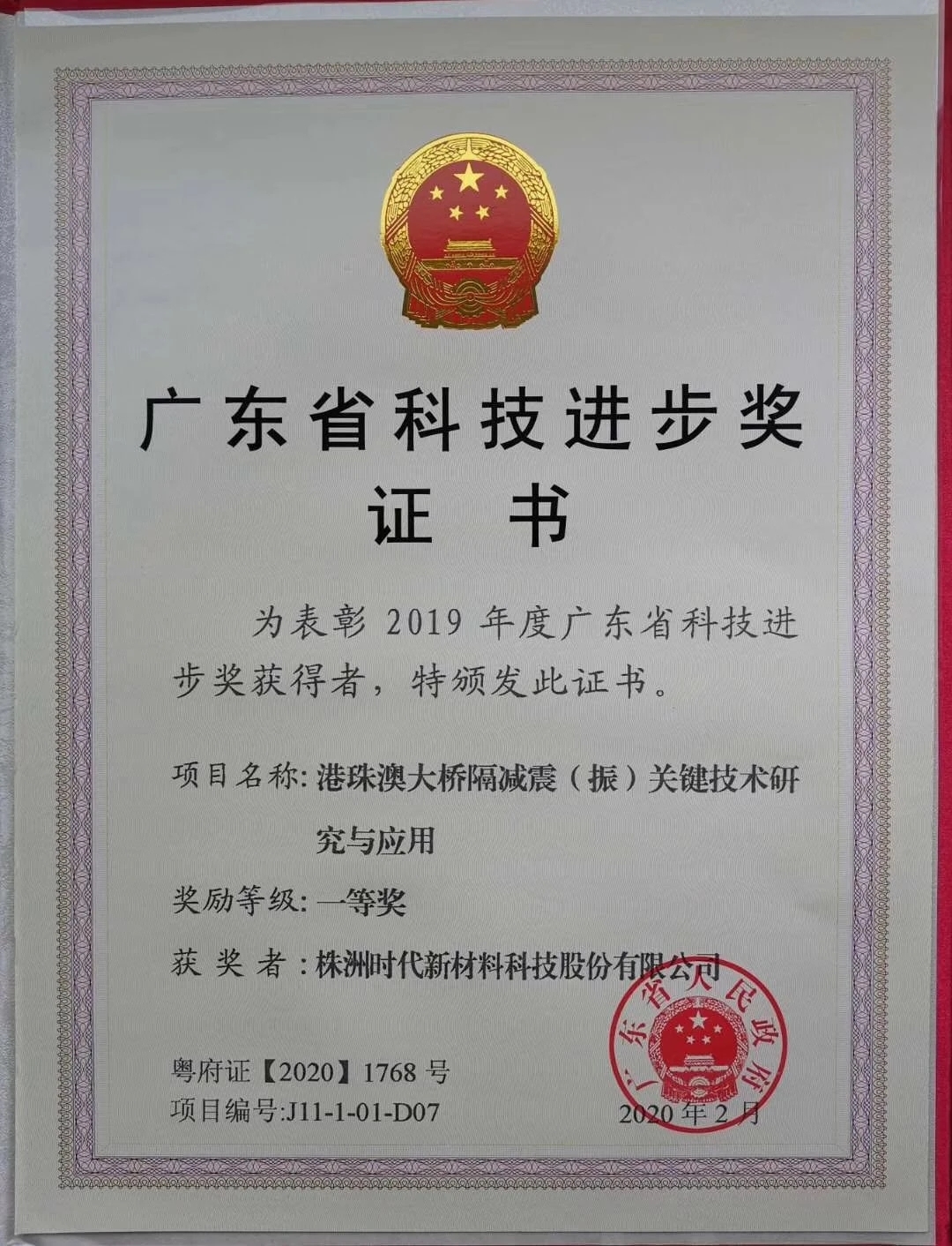 广东省科技进步一等奖