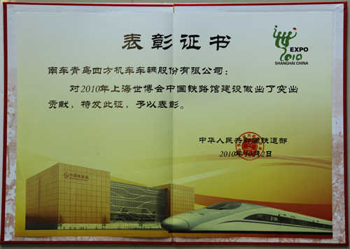 上海世博会表彰证书