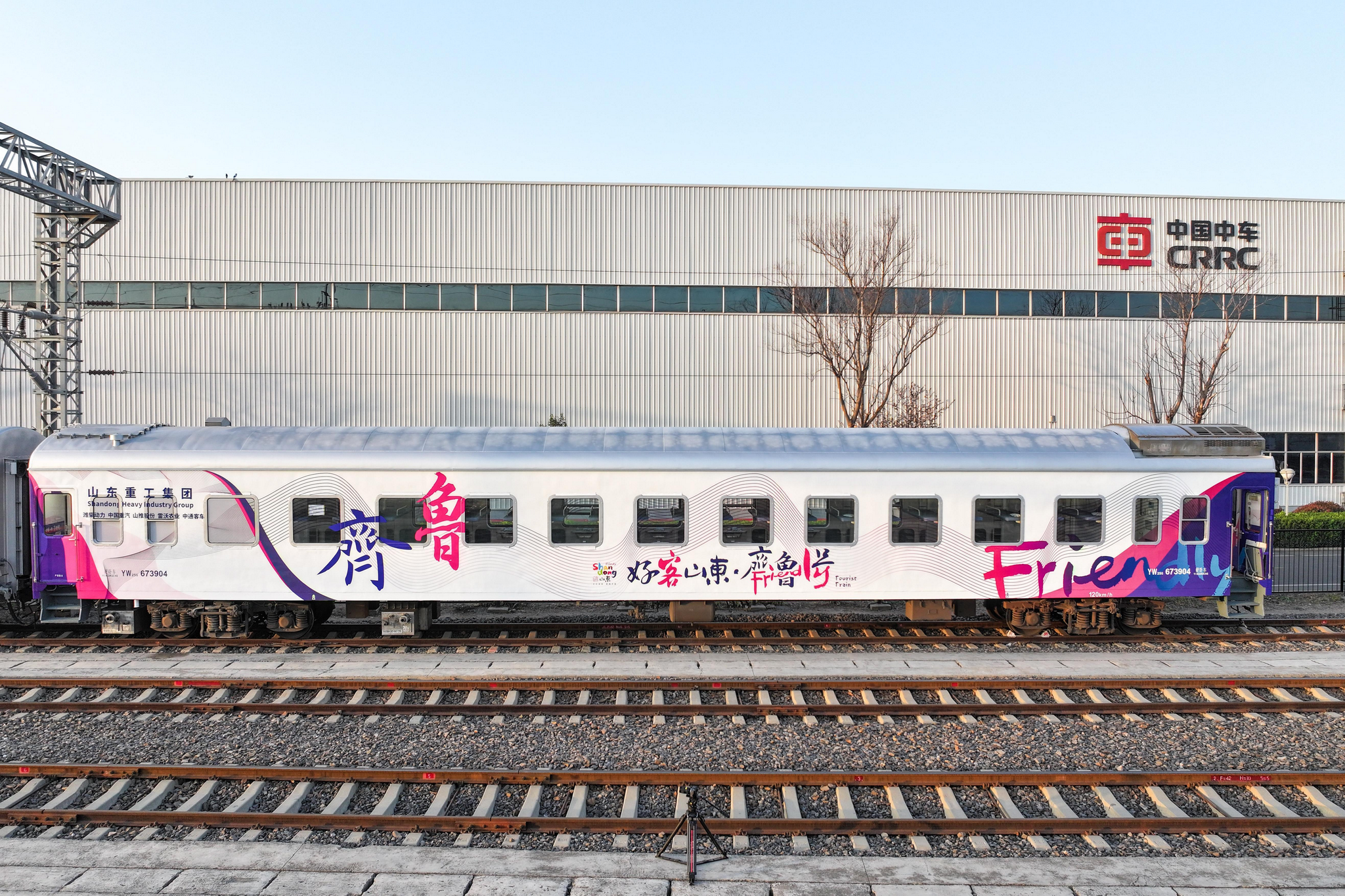 彰显山东特色。外观内饰定制“好客山东·齐鲁1号”主题装饰,融入岱宗、黄河等齐鲁自然元素,以“岱青海蓝”的蓝紫色和“时代华彩”的玫红色为主题色,七色谱渐变飘带图案,象征黄河奔涌的波浪,凸显齐鲁特色。