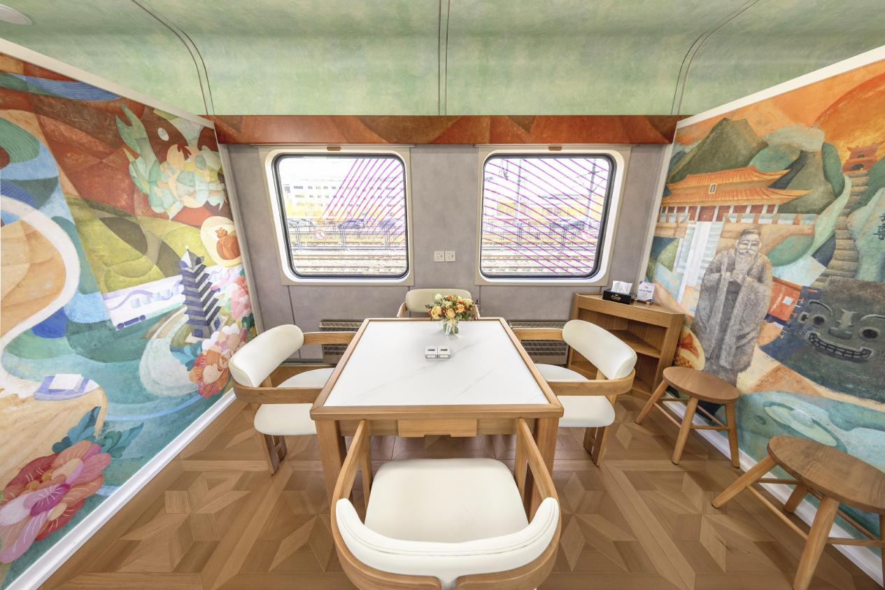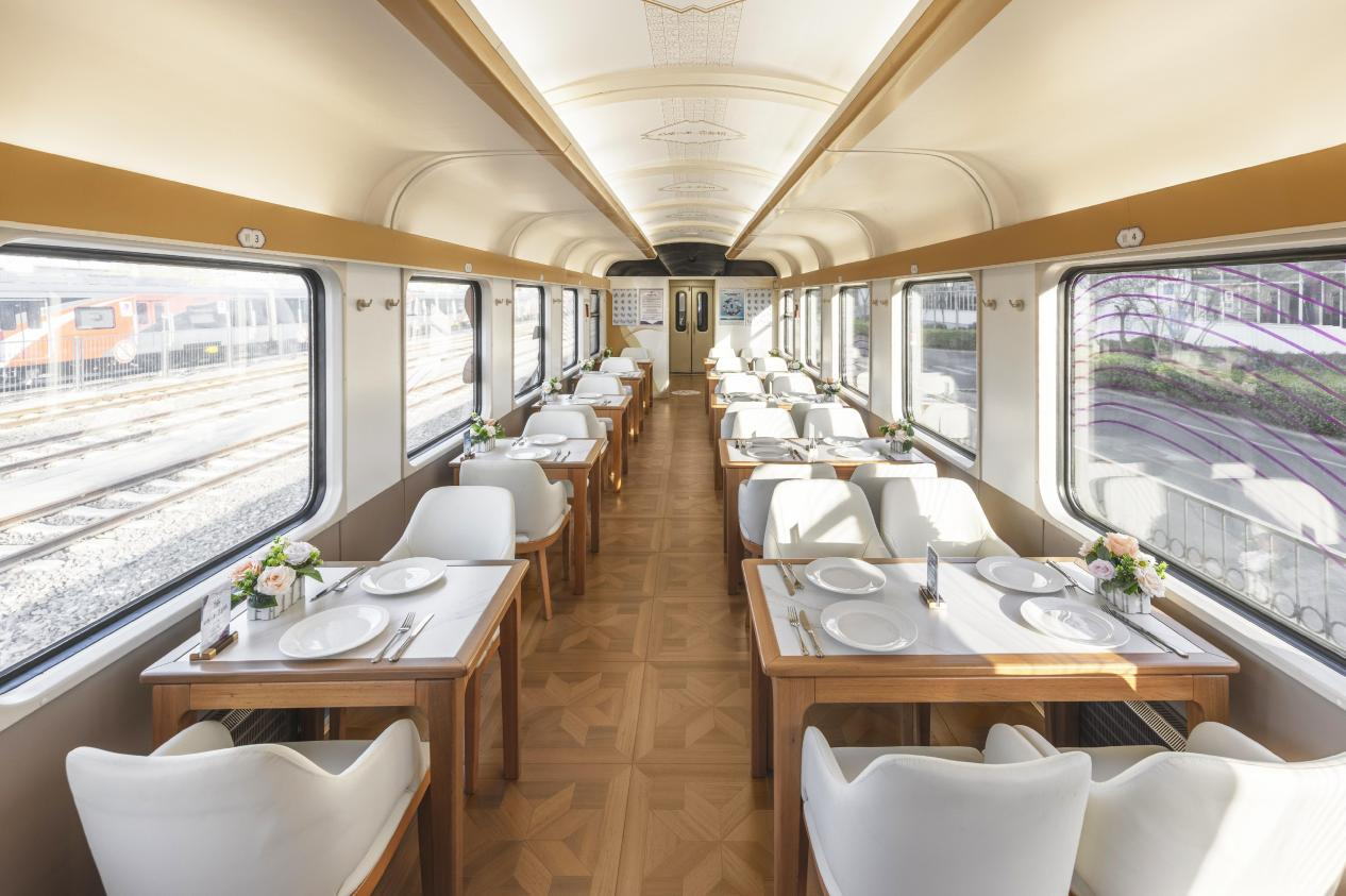 提供“吃住行游购娱”一站式服务。全新打造2节多功能车厢,设置吧台、茶室、棋牌室、休闲区、儿童游乐区、情侣卡座、观景区等多种功能区,满足亲子游、情侣游、银发游等多样化旅游需求。设有怀旧餐车和美食餐车。
