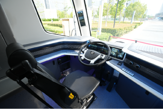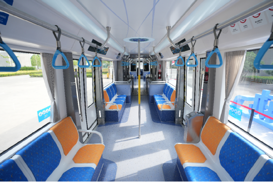 The vehicle is spacious, with 100% flat level low floor design, and without any steps for the whole vehicle, much more accessible for passengers. The double wishbone independent suspension, wheel-side motor drive and multi-stage vibration damping technology are adopted to improve the stationarity of the vehicle. The saloon is equipped with charging equipment. Five-hole sockets, USB and Type-C charging interfaces are provided to meet the charging needs of different electronic devices.