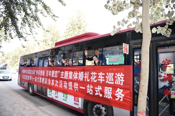 9月25日,中国中车石家庄车辆有限公司的7对新人乘坐着中国中车集团自己生产的新能源公交“花车”巡游省会,开启了自己的幸福生活。 当日,中国中车石家庄车辆有限公司7对新人职工在新厂区举行了集体婚礼,用一场特殊的仪式为这座百年老厂110岁的生日献上了一份特殊的祝福。