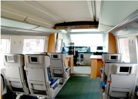该动车组客室分一等车和二等车,其中全列提供旅客电视系统,一等车设有商务包间和旅客信息系统,旅客可选择100余套影视节目,同时可进行网上游戏和相关旅游信息的查询。 动车组内部装修简洁、明快、舒适、优美,全列各门均为自动拉门,为旅客提供安全舒适的旅行环境。
