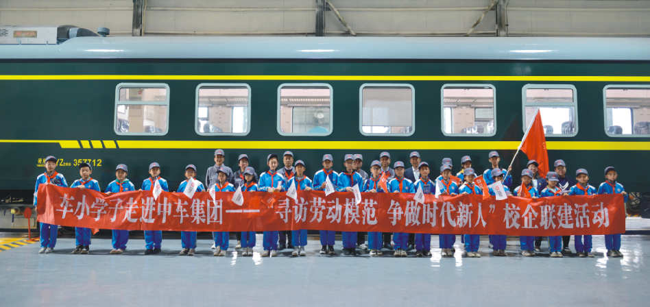 4月25日,公司与沣东新城车辆小学共同开展了“寻访劳动模范 争做时代新人”活动,二十余名小学生代表在老师的带领下,来到公司国家级技能大师工作室寻访劳动模范、学习劳模精神,在“五一”国际劳动节到来之际为劳动模范送去祝福,同时参观铁路车辆生产过程,致敬一线劳动者。