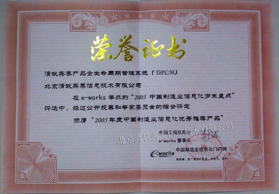 2005年度中国制造业信息化优秀推荐产品(TiPLM)