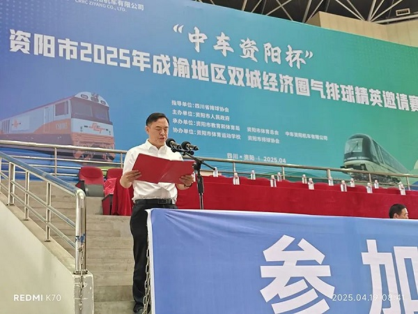 公司党委副书记、总经理杨文胜致辞。他代表公司祝贺比赛成功举办。他强调,公司不仅将持续为百姓提供绿色、安全、快捷的轨道交通产品,更将积极投身全民健身事业,践行企业社会责任、回馈社会与市民,以“政企共建健康城市”为目标,深化“体企合作”,与资阳携手绘就一幅人人参与、人人健康、人人幸福的时代画卷。他预祝各位运动员赛出水平、赛出风格,各代表队斩获佳绩、满载而归!