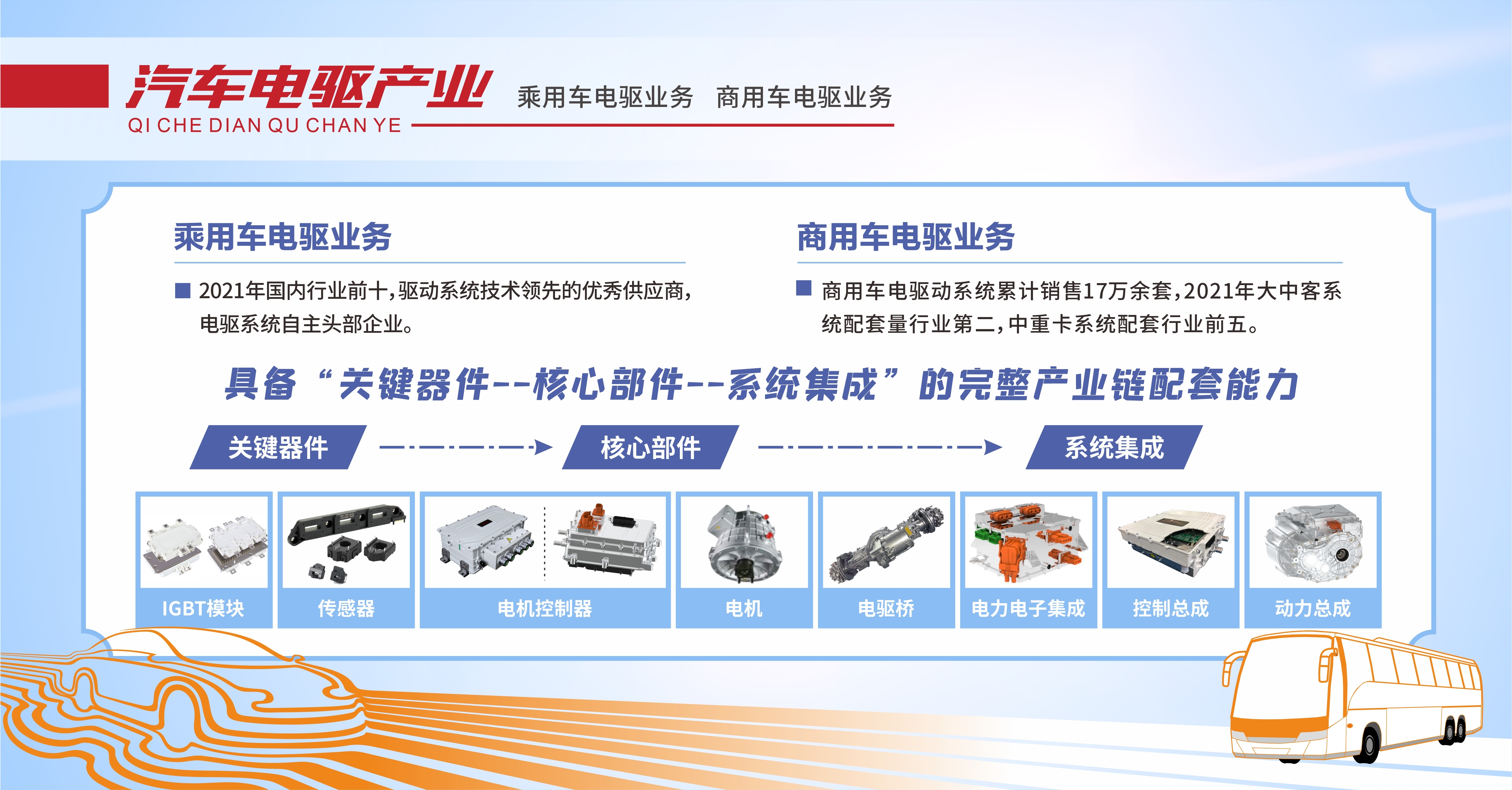 公司汽车电驱产业包含乘用车电驱、商用车电驱等业务。 |