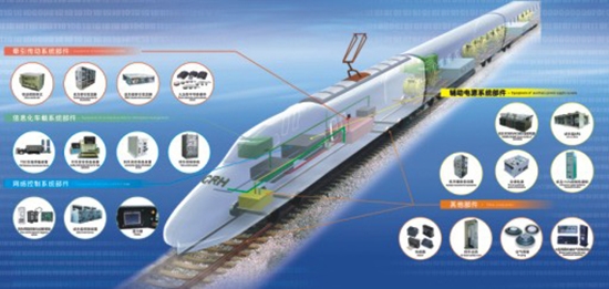 通过“引进、消化、吸收、再创新”, 公司已搭建起覆盖120km-350km速度等级的动车组电气牵引系统平台。主要提供动车组牵引变流器、辅助变流器及网络控制系统等;同时还研制出了适合于动车组用的换气装置、车地无线通讯装置、轴温监测装置、乘客信息显示器、给水卫生系统、速度传感器、转向架失稳检测装置、配电盘和司机操纵台等产品。主要配套在CRH2型(包括适用于高寒抗风沙动车组)、CRH380A、 CRH6型动车组上,累计装车已突破900列,广泛运用于高速铁路、城际铁路和市域交通等领域,并走向阿根廷、马其顿、格鲁吉亚等海外市场。 在客车电气方面,依靠公司强大的技术力量和多年的产品应用实践,公司相关产品已广泛应用于客车领域。其中DC600V供电系统、客车集便器等产品已大批量运用于25G/T客车上。