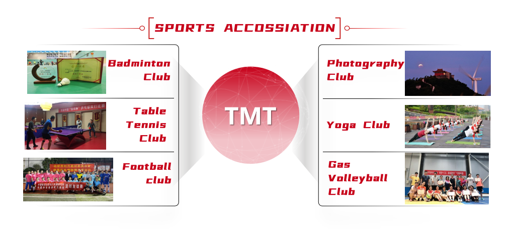 Established in 2008, Sports Association of TMT carries out various activities in an orderly manner, thereby enriching the leisure time of employees, enhancing teamwork and cohesion, promoting physical and mental health, and cultivating staff sentiment. It has made a significant contribution to the company's research, production, and business operations. Sports Association of TMT has 10 types of clubs under its jurisdiction with more than 2,800 members. The participation rate of company employees in association activities is 100%.